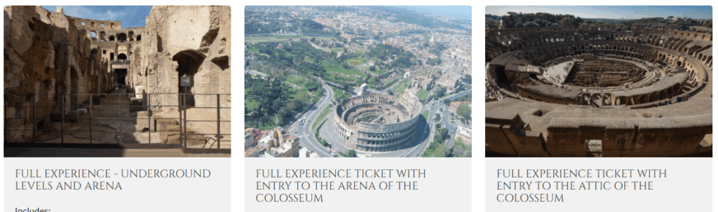 | FULL EXPERIENCE (地下+アリーナ) | 地下通路、アリーナ、周辺遺跡 | 24€ |