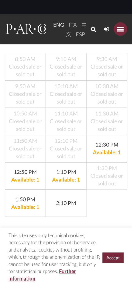 公式サイトでの予約は英語になるので、不安な方は日本語対応サイトであるKlookやベルトラでの予約もおススメです。